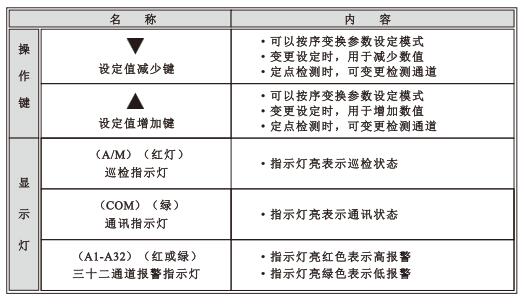 當前通道上限,下限報警值顯示·發光二極管工作狀態顯示