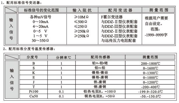 輸入信號﹐電阻—一各種規格熱電阻(見規格篇),如Pt100、Cu100、Cu50等或遠傳壓力電阻